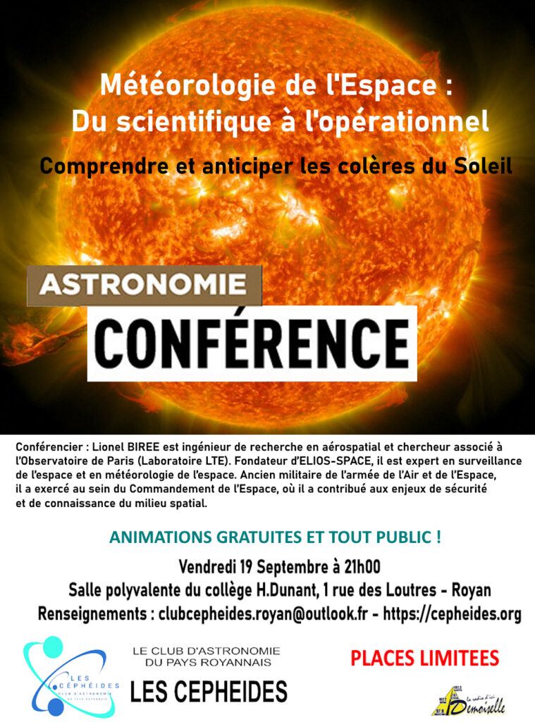 5 novembre – Conférence « Météorologie de l’espace : du scientifique à l’opérationnel » au Club d’Astronomie SAVOIE LACTEE – 73400 UGINE